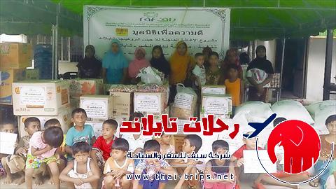 وفي المرحلة الأولى من الحملة الإغاثية العاجلة، قامت جمعية نداء الخير بتايلاند شريك مؤسسة "راف" بتوزيع المساعدات على اللاجئين في ولاية بانجغا، حيث تم تقديم المساعدات أولا للاجئين من الرجال في قسم الشرطة في منطقة بان خوان، ثم تواصل تقديمها للنساء والاطفال في ملجأ للأيتام والمشردين في منطقة بانن يا في نفس الولاية.