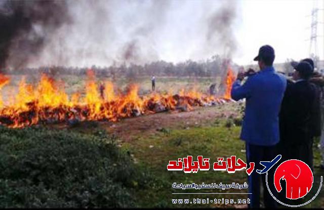 وأظهرت صور من الموقع المسؤولين وهم يشعلون النار في أكوام من المخدرات بارتفاع مترين.