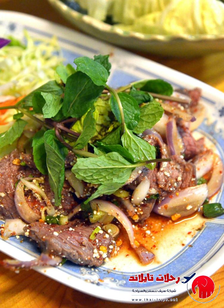 تأكل هذه الوجبة في منطقة شمال تايلاند وهي عبارة عن سلطة باردة تحوي اللحمة المفرومة مع التوابل المحلية الحارة والجافة مثل الكمون والقرنفل وليسوم والفاغرة والقرفة وخضراوات كالفلفل الأخضر الحار والنعناع والبصل الأخضر. أحياناً يقدم بجانبها الأرز.