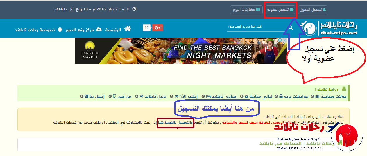 أولا : عند الدخول إلى صفحة المنتدى الرئيسية (الحالية) ستجد بأعلى (تسجيل دخول - تسجيل عضوية - .. ) يهمنا كزوار نرغب فى العضوية الضغط على تسجيل عضوية كما بالصوره التاليه :