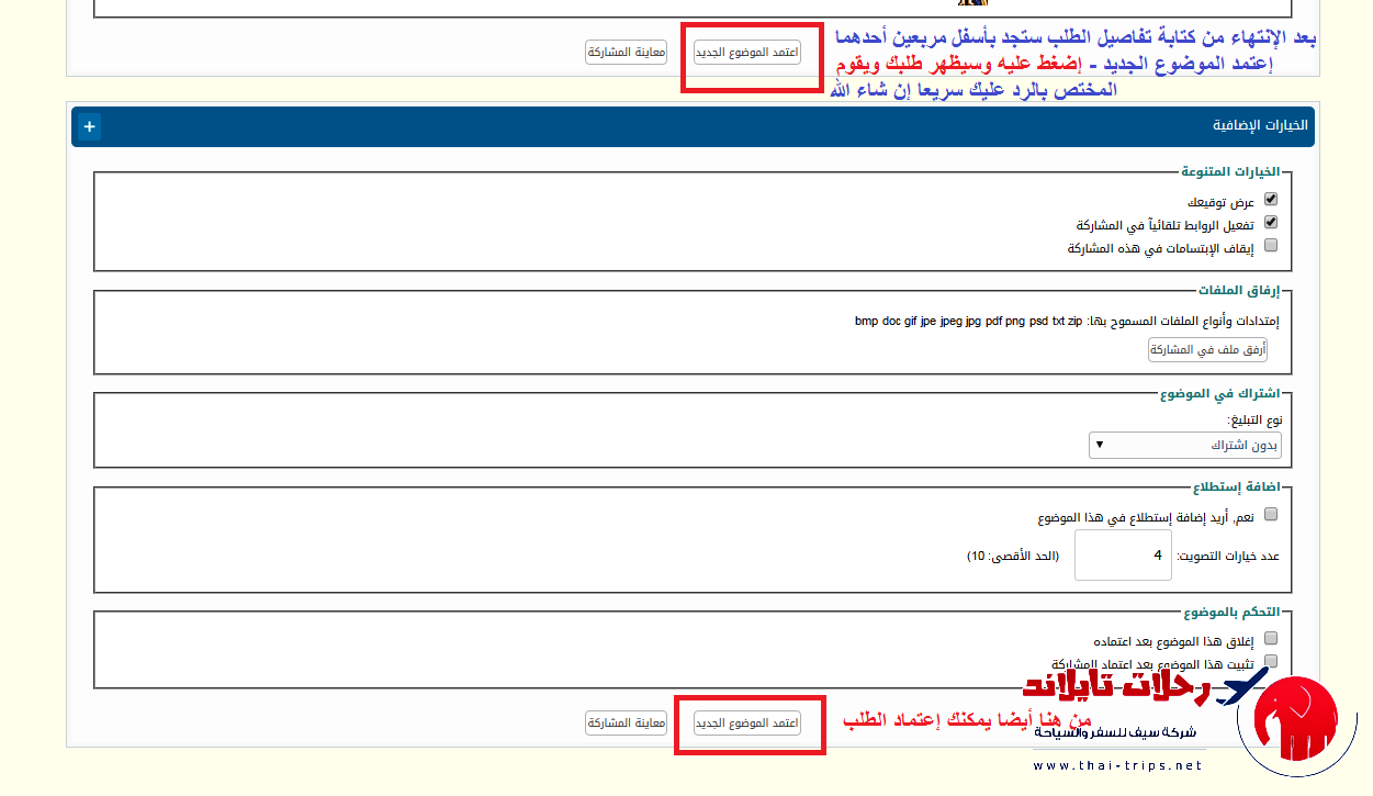 سيتم تحويلك غلى إستمارة ملئ الطلب الخاص بك : فقط إختر عنوان مناسب وإملأ التفاصيل وأعتمد الموضوع الجديد كما بالصور التاليه :