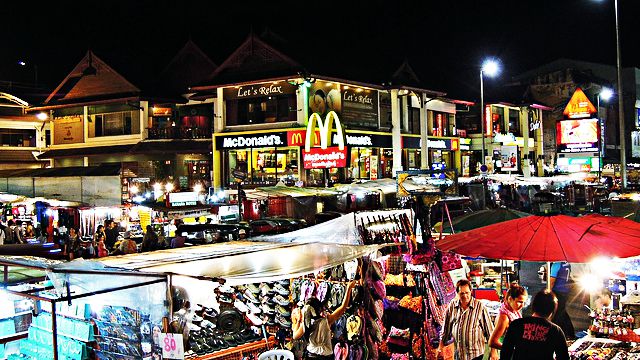 ويوجد فيه الكثير من المطاعم الجيدة منها مطعم عربي وما يقارب 5 مطاعم هندية وباكستانية وتايلندية ويتوفر فيها الاكل العربي الحلال وكذلك في قلب السوق الليلي يوجد مطاعم كماكدونالز وبرجركينغ وستاربكس والكثير من المقاهي المشهورة