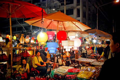 البازار الليلي Night Bazaar من اشهر اسواق شنغماي الشعبية حيث تراه مزدحماً بشكل دائم وخصوصاً في المساء، يضم السوق الكثير من المتاجر والاكشاك التي تبيع الحرف اليدوية والمنسوجات والهدايا التذكارية الى جانب المطاعم التي تقدم اشهى المأكولات ومحلات الوجبات السريعة وغيرها