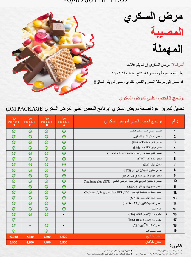 برنامج الفحص الطبي لمرضى السكري بسعر خاص يبدأ من 2900 بات للشخص !