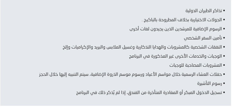 الإستثناءات وما لا يشمله العرض [FA]minus-circle[/FA]