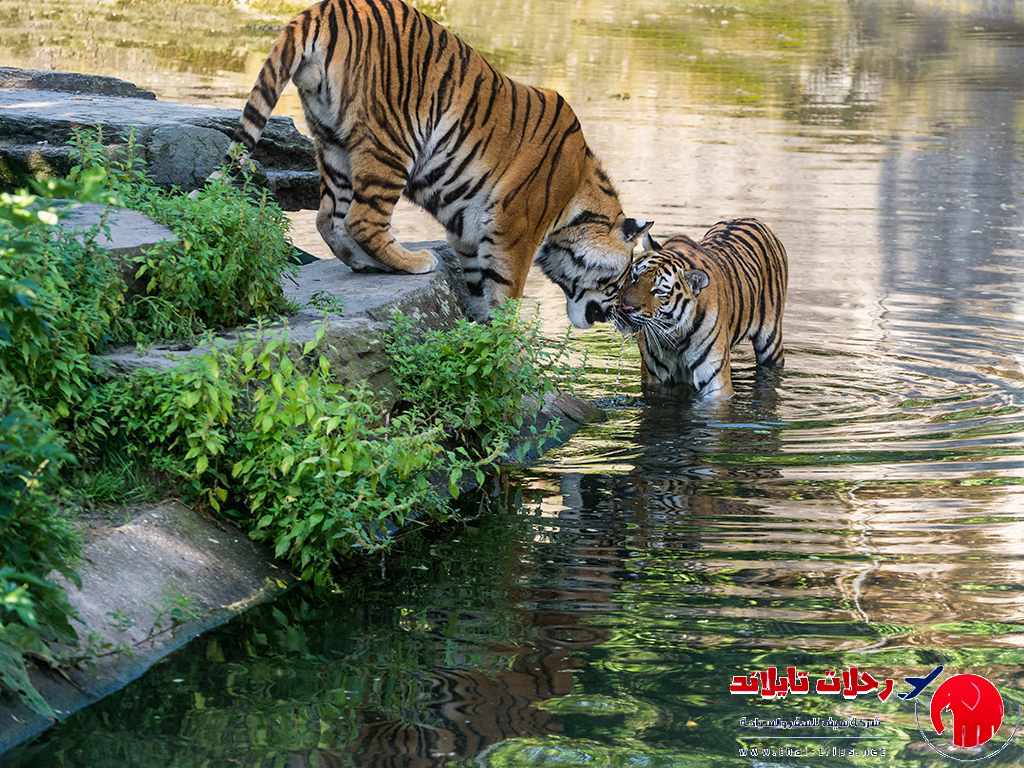 حديقة حيث يقوم العاملين في حديقة الحيوان بحمايتها وتأمين غذائها والحرص على أن تلد صغارها وتنشأ بطريقة سليمة