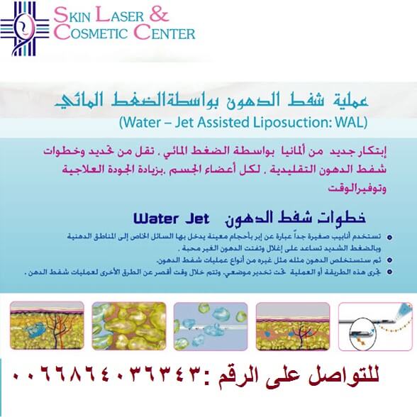إبتكار جديد من ألمانيا بواسطة الضغط المائي ، تقل من تحديد وخطوات شفط الدهون التقليدية ، لكل أعضاء الجسم ، بزيادة الزيادة الجودة العلاجية ، وتوفير الوقت (Water – Jet Assisted Liposuction: WAL)