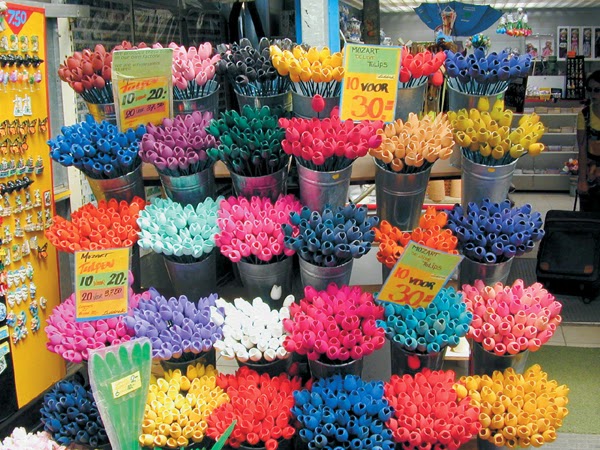 يعرض السوق مجموعة كبيرة من الزهور العطرية التي تشتهر هولندا بزرعتها منها أزهار التوليب و النرجس.